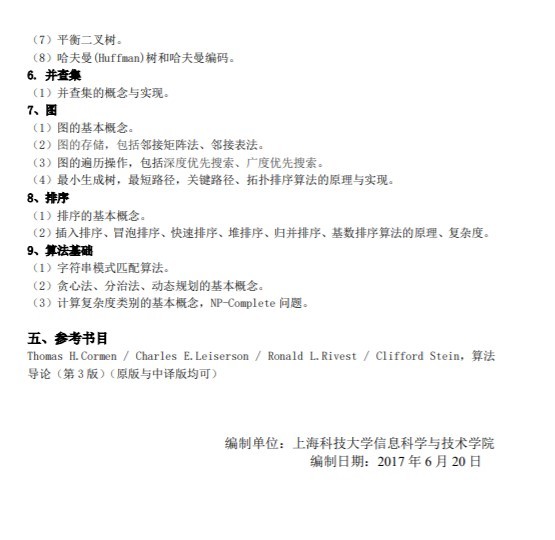 上海科技大学2021硕士研究生招生数据结构与算法考试大纲