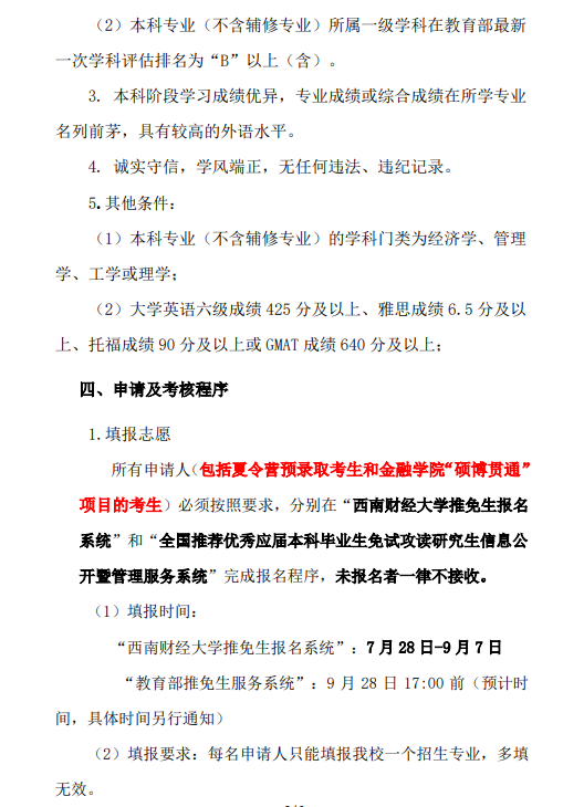 推免生,全称“推荐优秀应届本科毕业生免试攻读硕士学位研究生”,是指可以不用参加研究生考试而直接读研的一种情形,换句话来说也就是我们平常所说的保研。推研按时间排序是:交叉、本系直博、本系直硕、外推、工硕。每年推研的时间为大四上学期9月初到9月末。今天小编为大家整理了2021西南财经大学金融学院推免生招生细则。