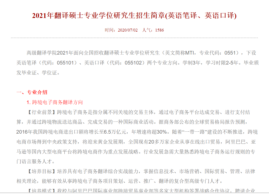 西安外国语大学高级翻译学院招收翻译硕士专业学位研究生的通知:西安外国语大学高级翻译学院2021年面向全国招收翻译硕士专业学位研究生两个专业方向。学制3年,学习时限2-5年。