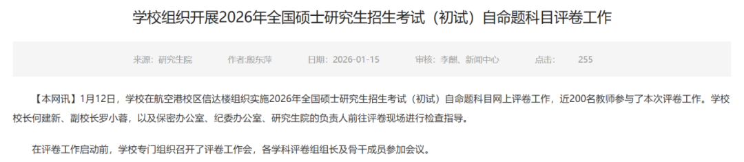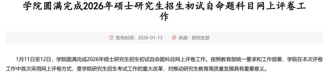 1月15日至16日,我校2026年硕士研究生招生考试初试自命题科目网上评卷工作圆满结束。