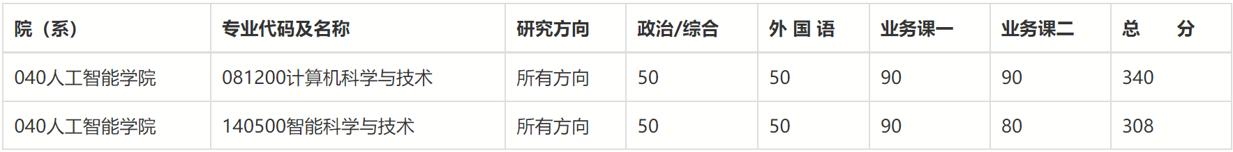 北京师范大学人工智能学院(学术学位)2026年硕士研究生招生复试分数线
