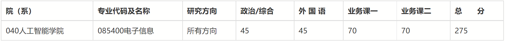 北京师范大学人工智能学院(专业学位)2026年硕士研究生招生复试分数线