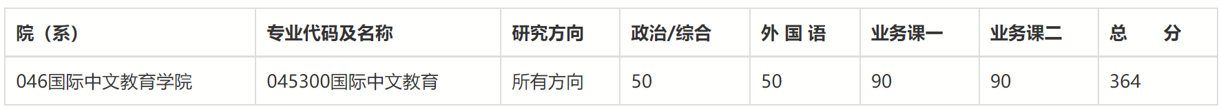 北京师范大学国际中文教育学院(专业学位)2026年硕士研究生招生复试分数线