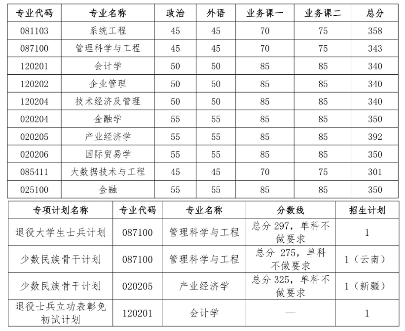 大连理工大学经济管理学院2026年硕士研究生复试分数线
