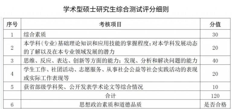 分值占比:专业能力及综合素质(70%)、个人素质情况(20%)、学业能力评价(10%);