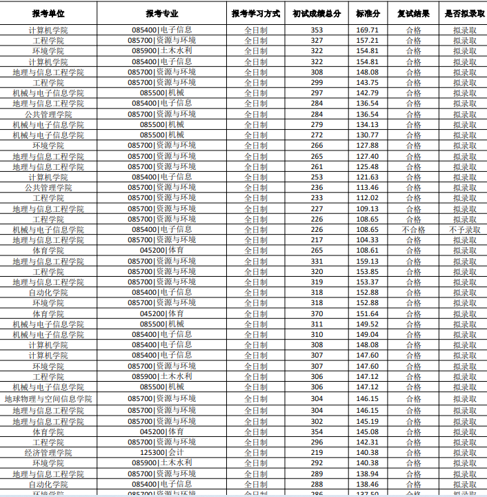 中国地质大学(武汉)2025年硕士研究生招生专项计划(少骨、士兵)复试结果及拟录取名单