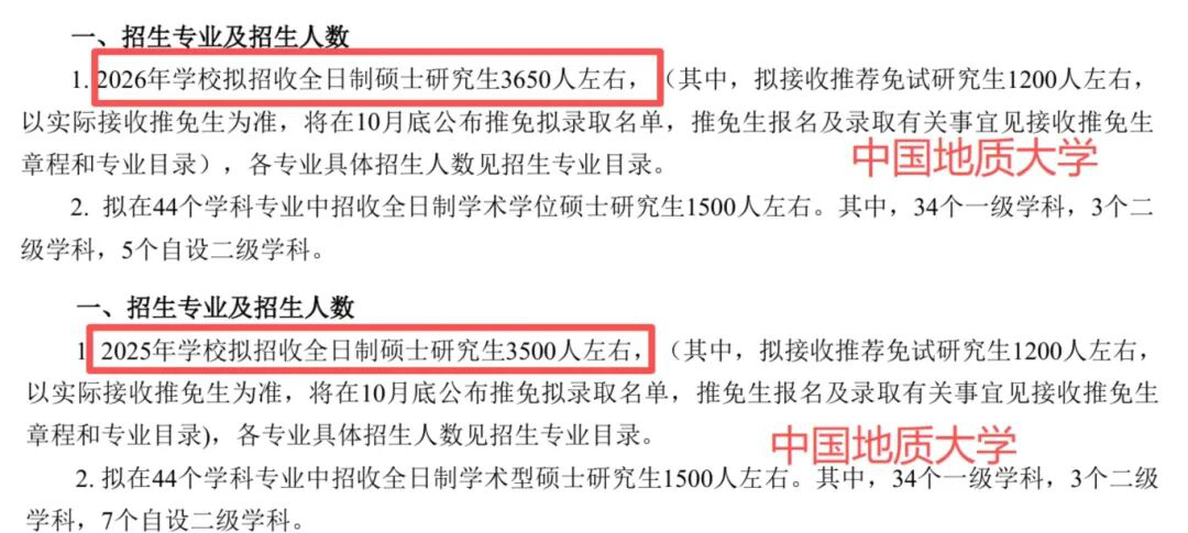 地大(武汉)26考研拟招收全日制硕士3650人左右,其中推免生约1200人;25考研时全日制计划为3500人,推免同样约1200人。重点来了——推免名额没变化,全日制总名额增加150人,这部分名额全部给到统考生,报考该校全日制专业的统考生要重点关注。
