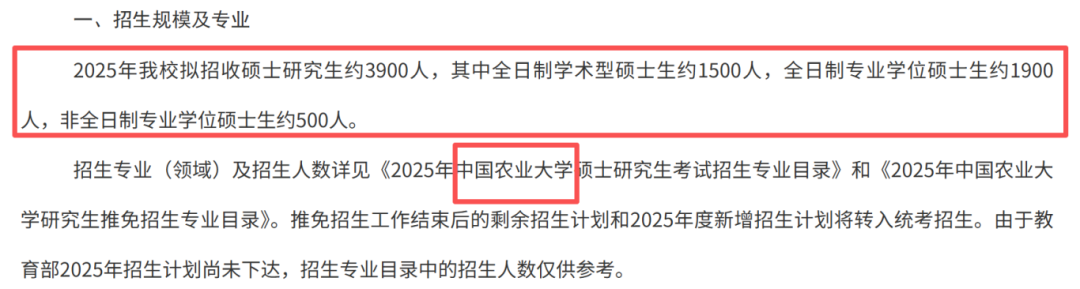 中农大26考研拟招收硕士研究生约4000人,其中全日制学硕1500人、全日制专硕2000人;25考研的计划是3900人,全日制学硕1500人、全日制专硕1900人。不难看出,今年新增的100个名额全部集中在全日制专硕,农林类专硕考生可以留意。