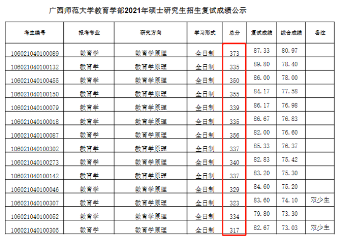 2021年广西师范大学教育学录取名单(部分)