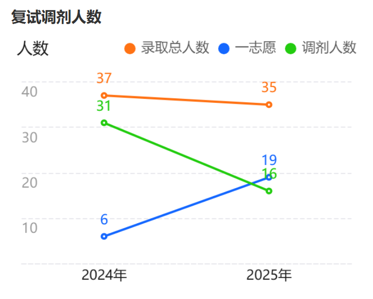 2024年: 一志愿录取仅6人,大量名额给了调剂(31人)。