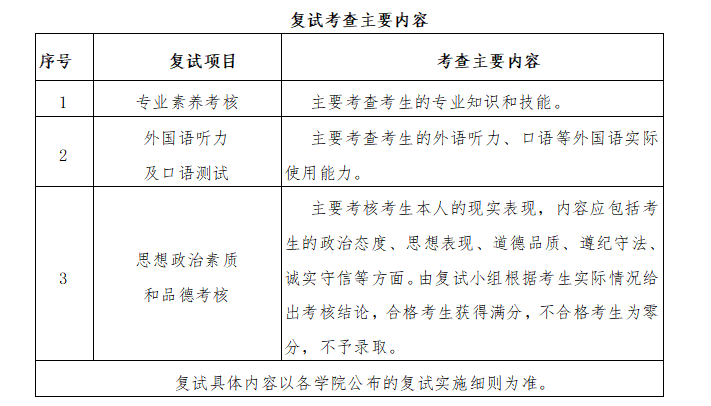 2.会计硕士(MPAcc)、图书情报硕士(MLIS)、工商管理硕士(MBA)、公共管理硕士(MPA)的思想政治理论考试由各学院在复试中进行考核,成绩计入复试总成绩,具体内容参见各学院复试工作细则。