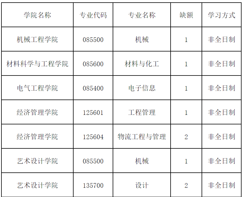 现部分学院接收非全日制专业调剂生,具体缺额信息如下。请意向考生4月11日上午10:00-13日上午07:30登陆调剂网填报调剂申请,并按照学院工作安排进行调剂复试。