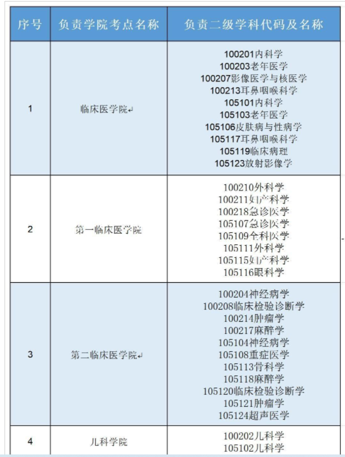 报考院系代码001海南医科大学考生根据不同二级学科分别在不同考点进行复试,具体如下表: